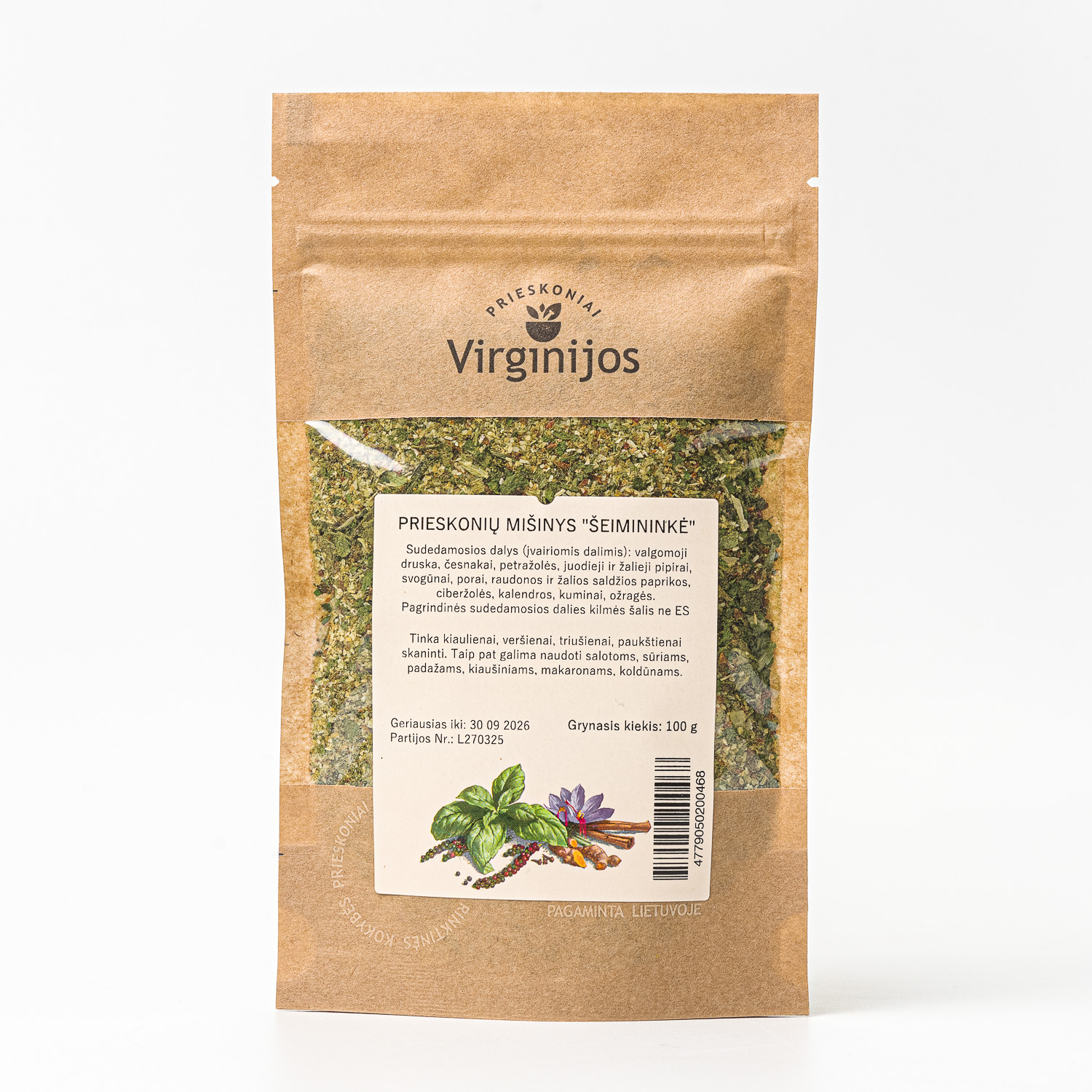 Sudedamosios dalys (įvairiomis dalimis): valgomoji druska, česnakai, petražolės, juodieji ir žalieji pipirai,  svogūnai, porai, raudonos ir žalios saldžios paprikos, ciberžolės, kalendros, kuminai, ožragės.