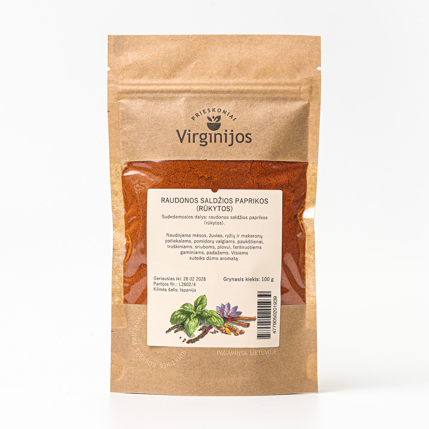 Raudona saldi paprika – vienas plačiausiai naudojamų prieskonių, jūsų gaminamiems patiekalams suteiks patrauklų, raudoną atspalvį, pikantiška paprikos skonį bei alkį žadinantį dūmų aromatą. Naudojama  mėsos, žuvies, ryžių ir makaronų  patiekalams, paukštienai,  troškiniams, sriuboms, plovui bei padažams gardinti.